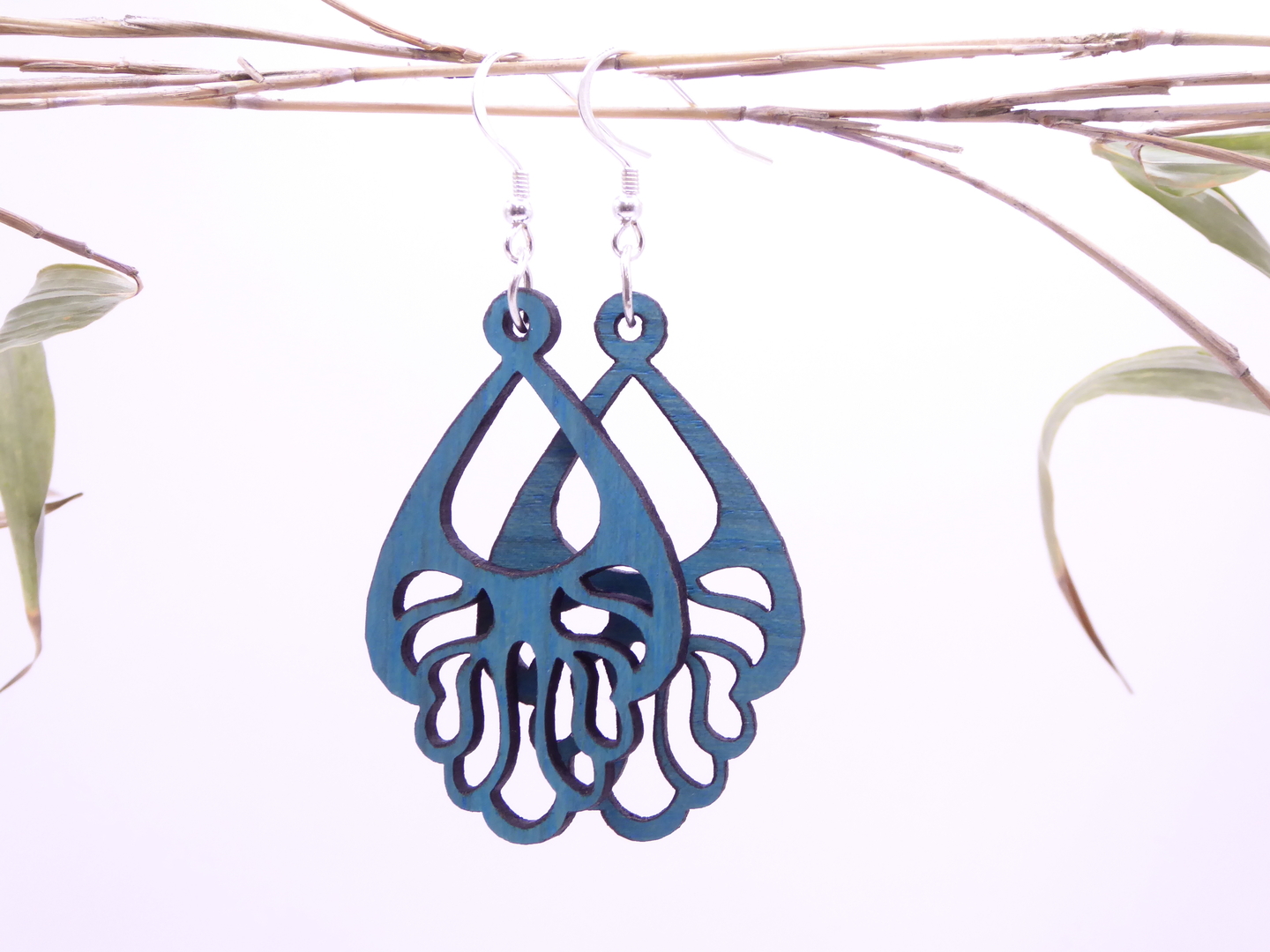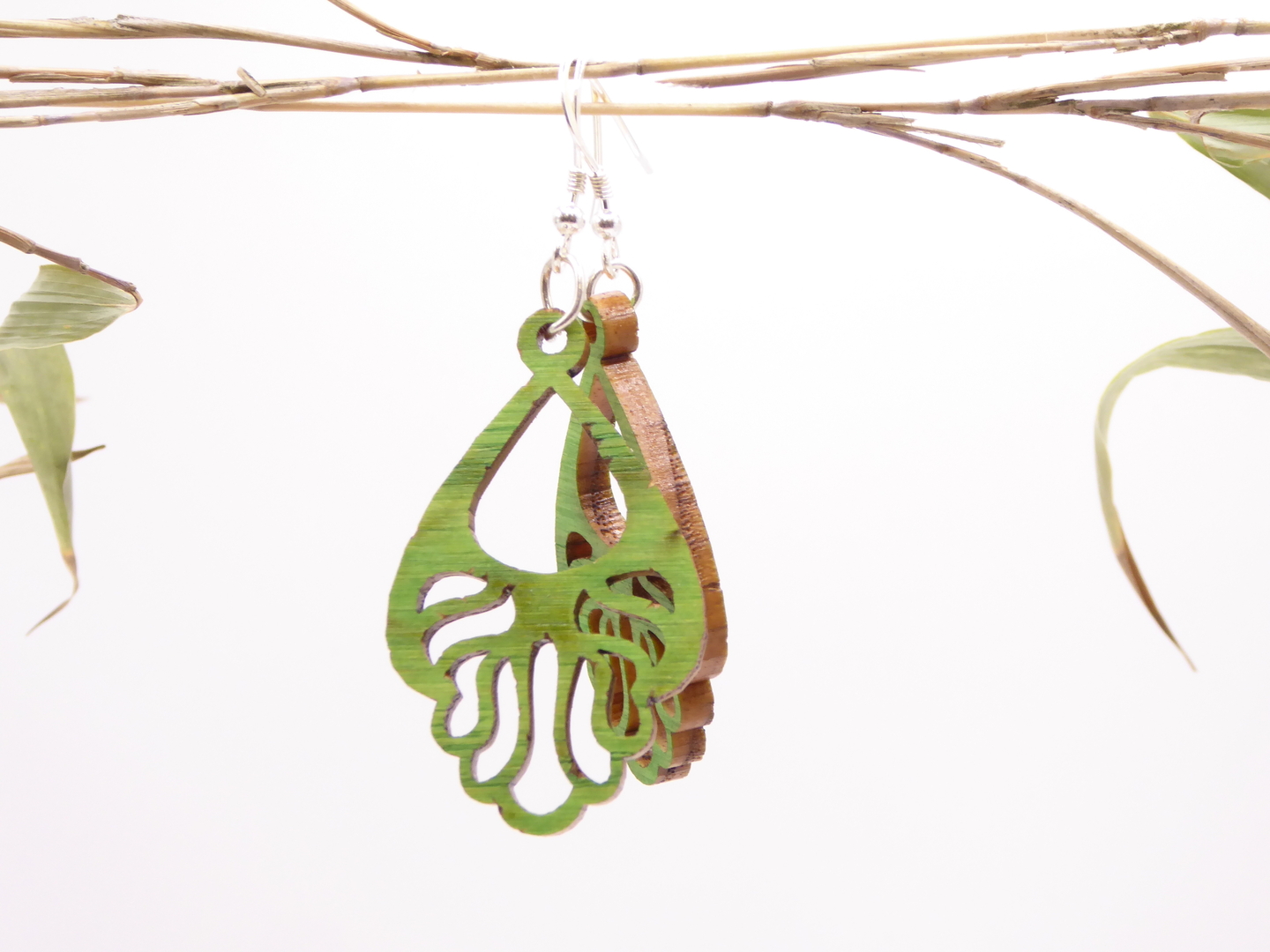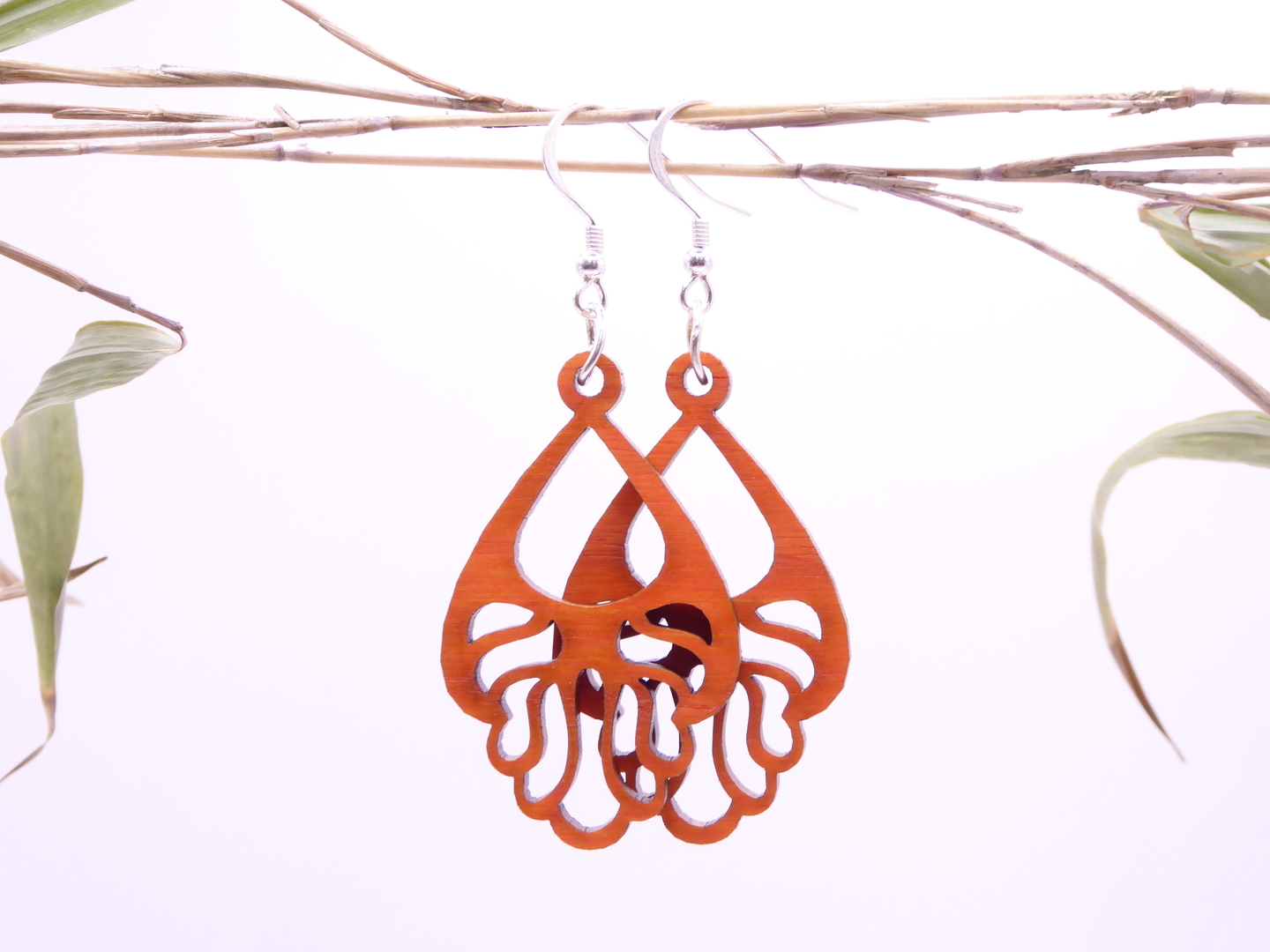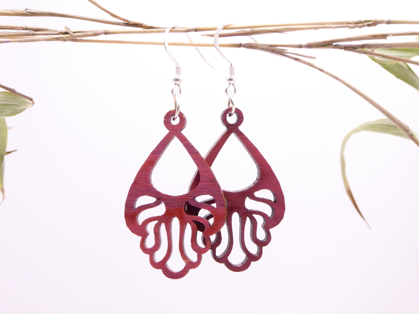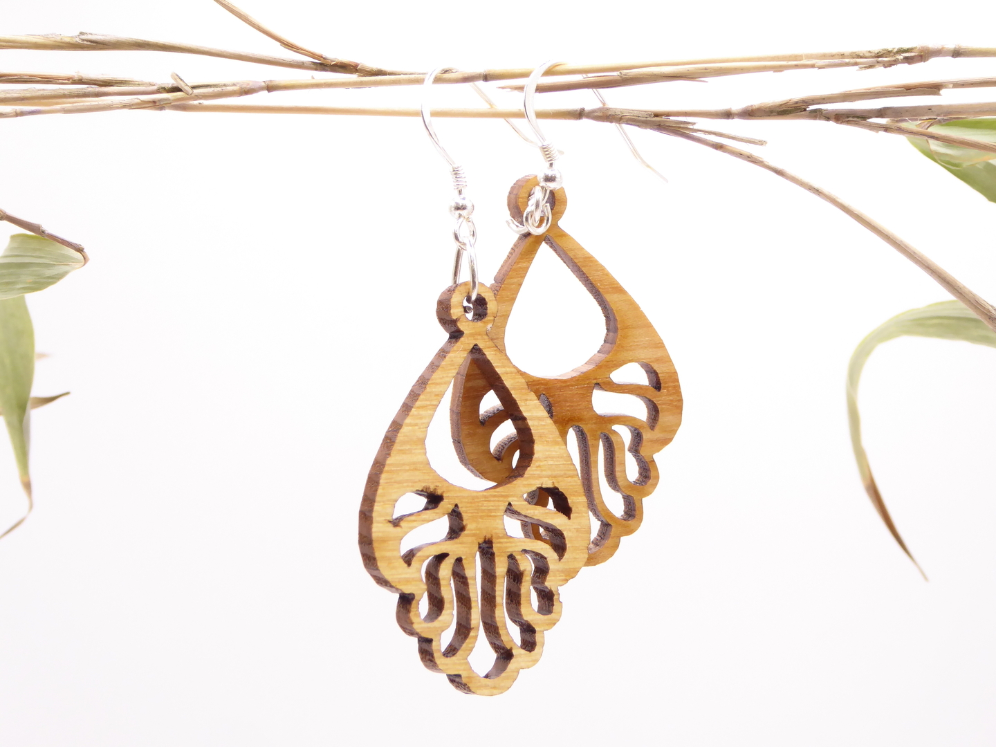 Boucles d’oreilles en bois massif, apprêts en argent 925.