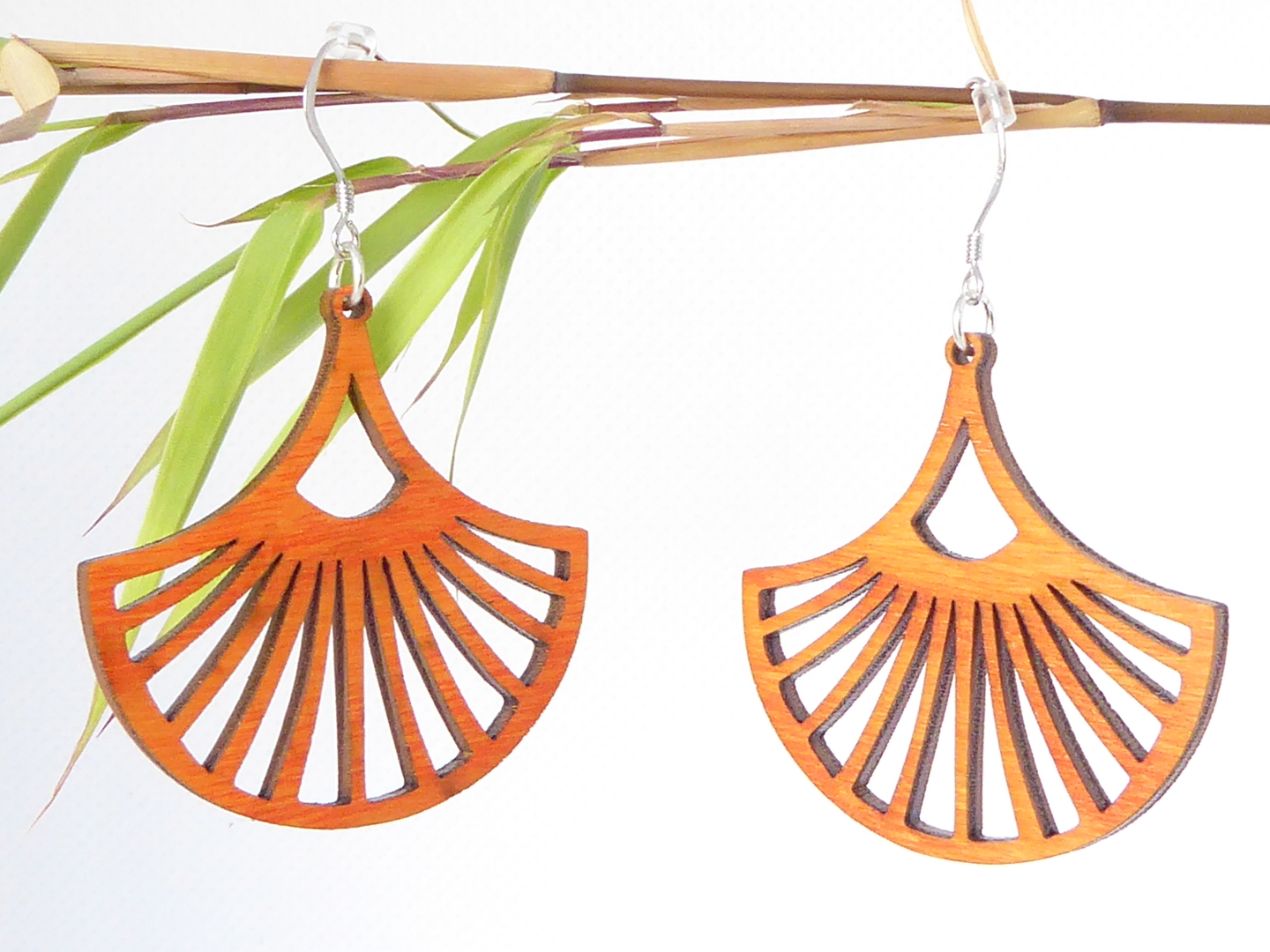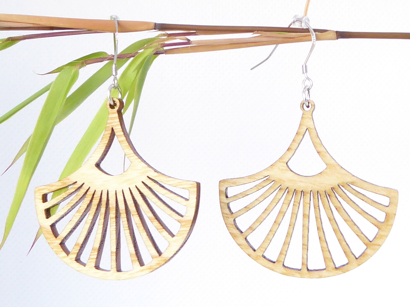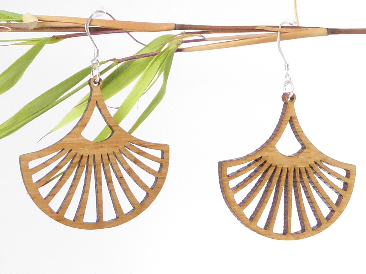 Boucles d’oreilles en bois massif, apprêts en argent 925.