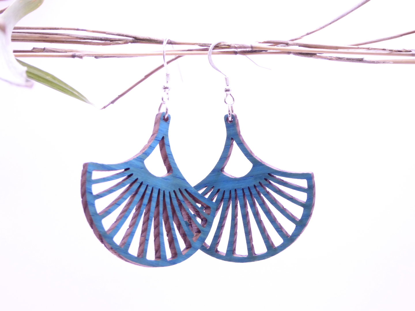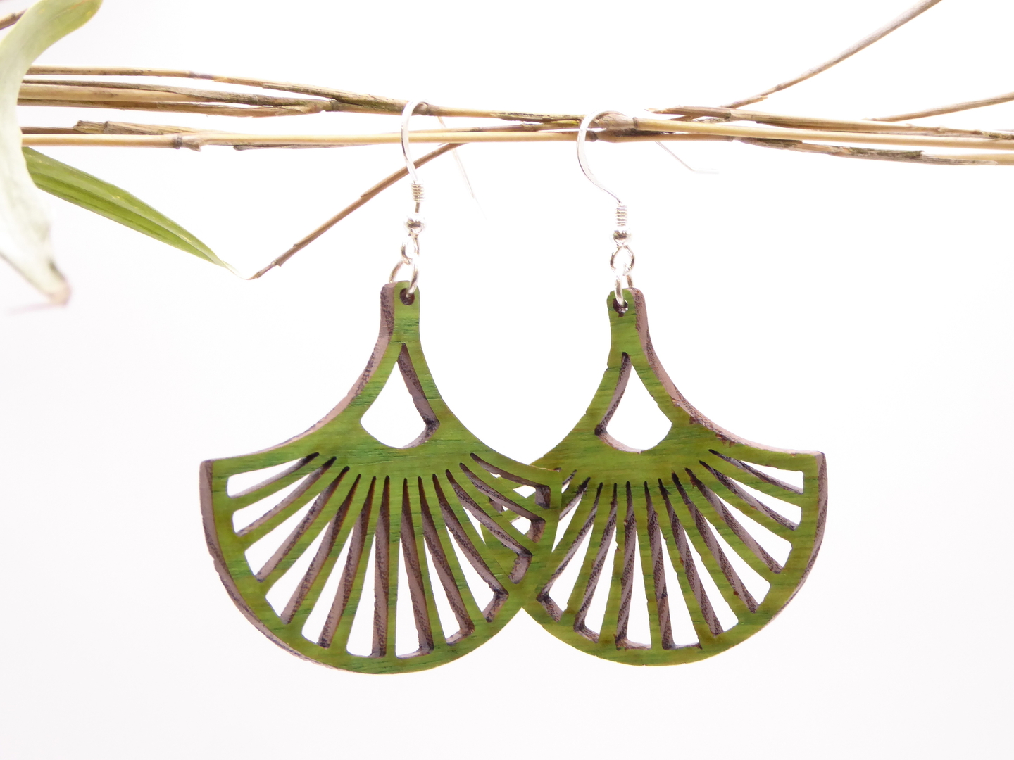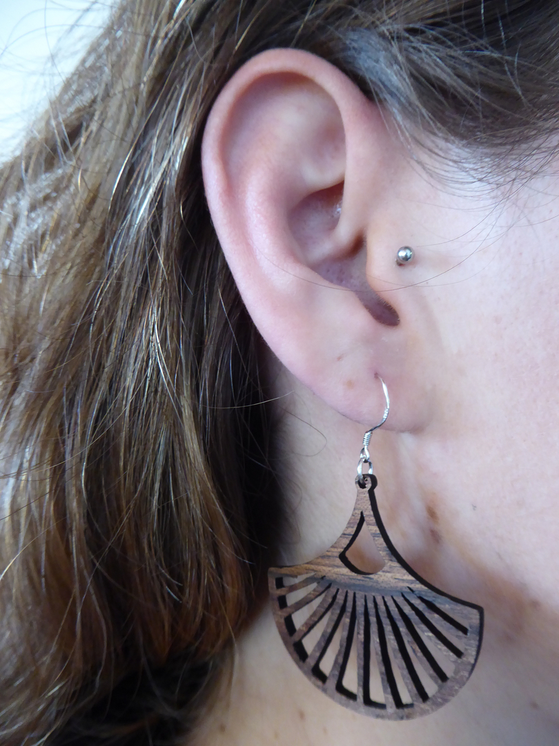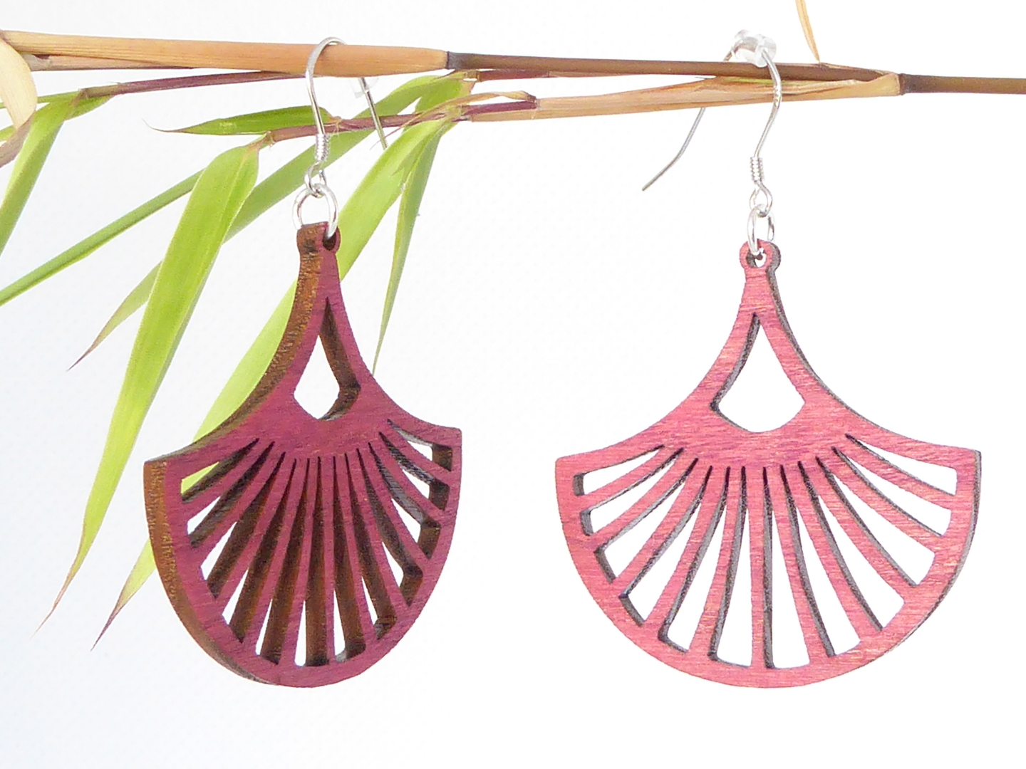Boucles d’oreilles en bois massif, apprêts en argent 925.