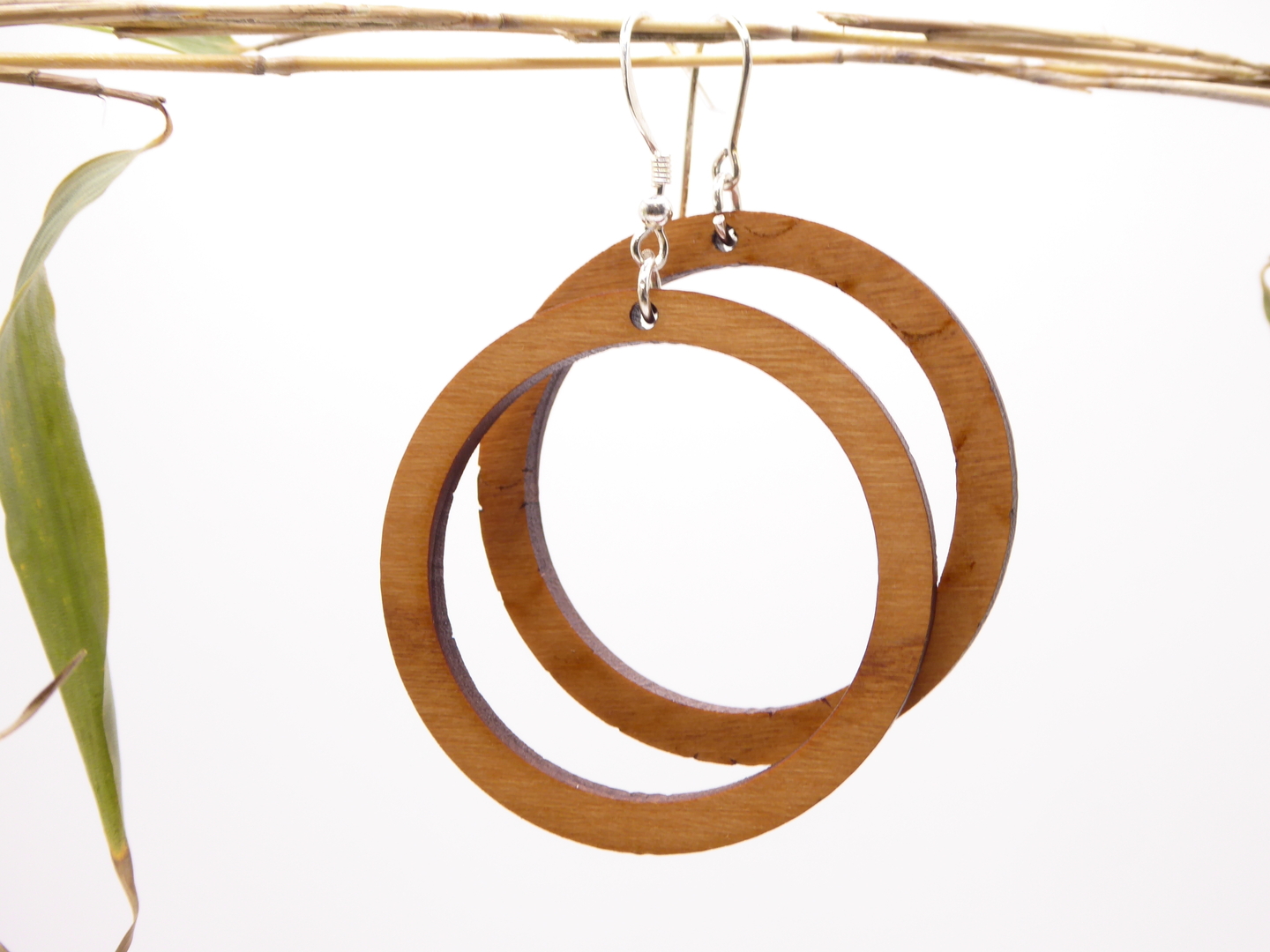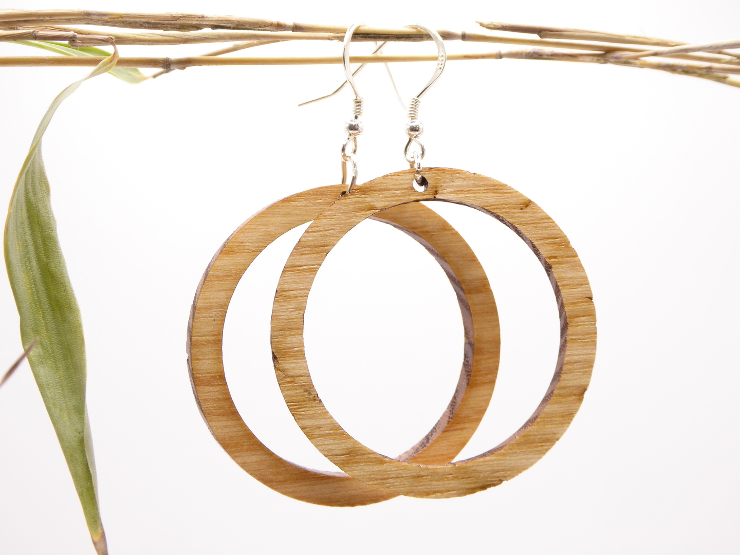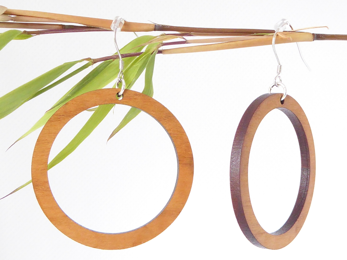 Boucles d’oreilles en bois massif, apprêts en argent 925.
