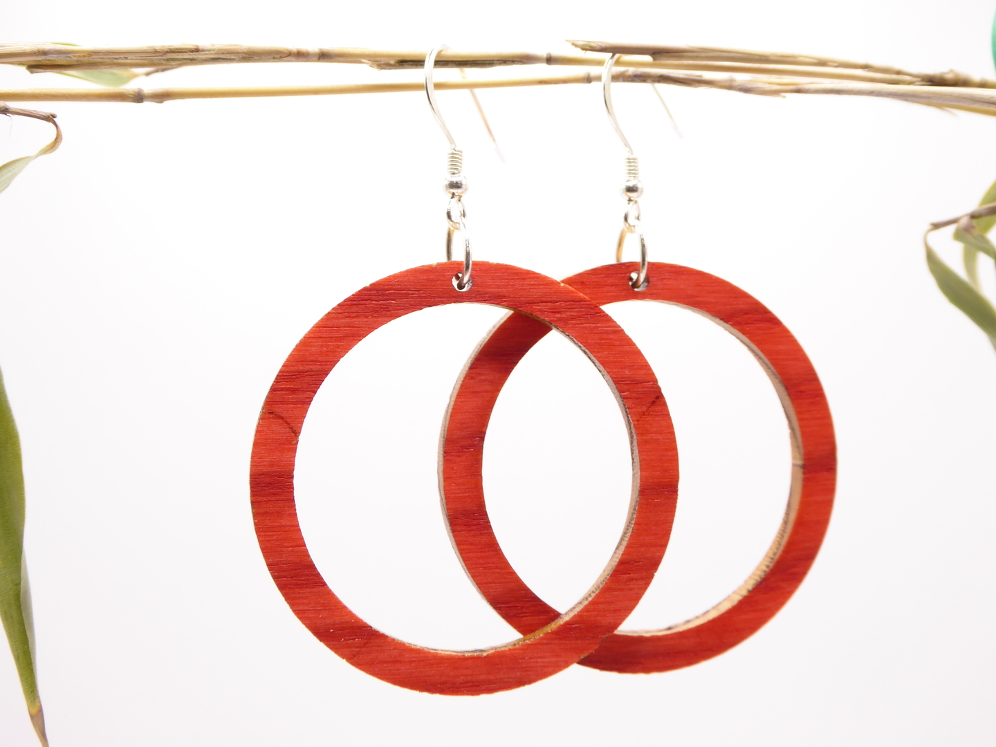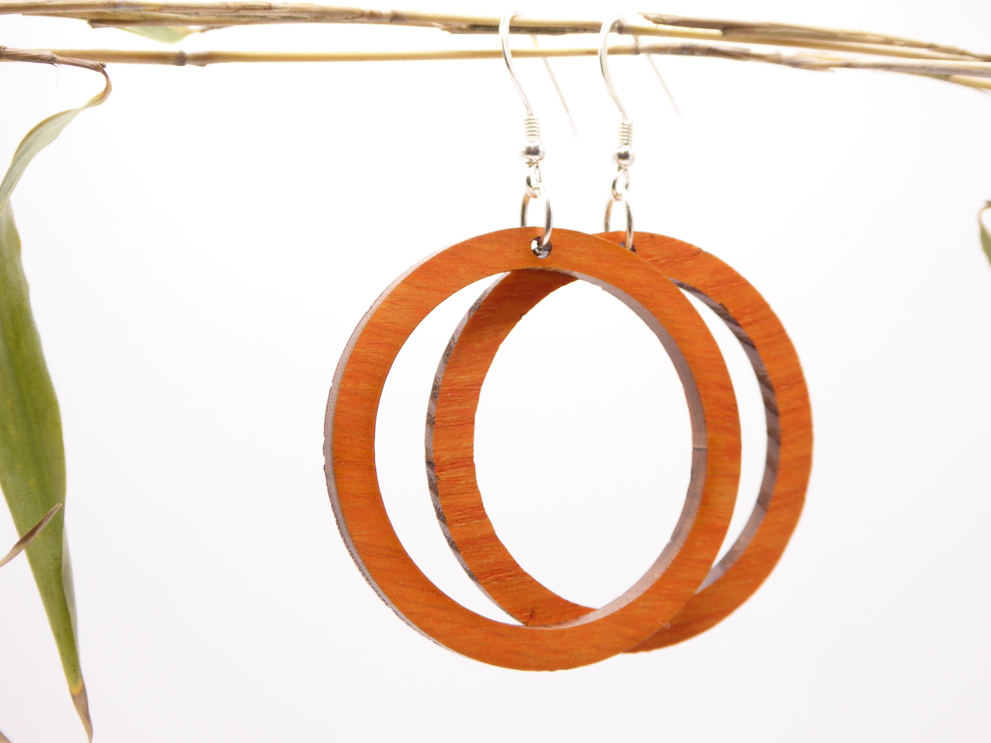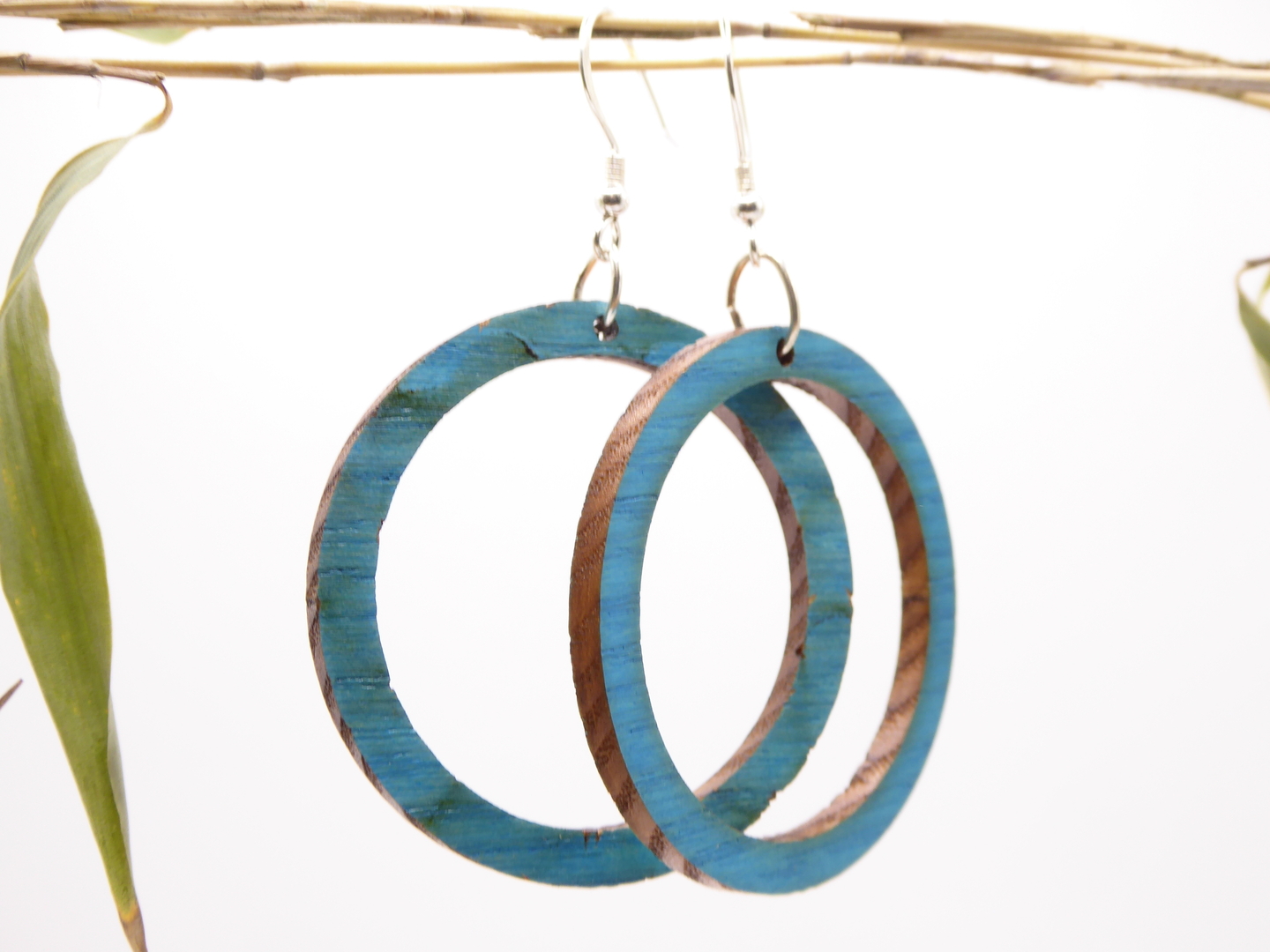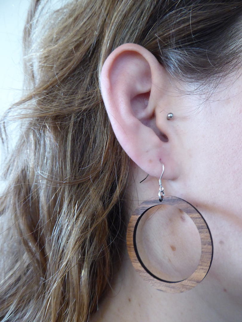 Boucles d’oreilles en bois massif, apprêts en argent 925.