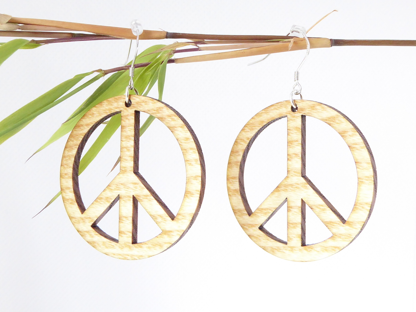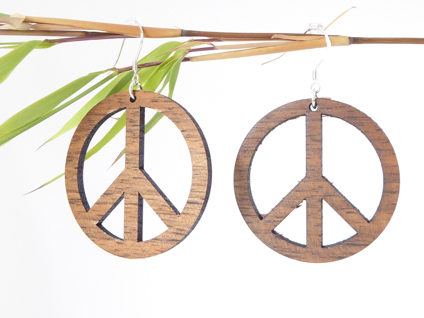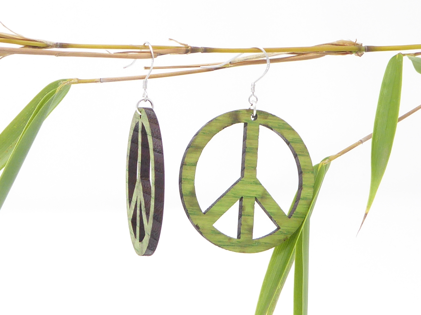 Boucles d’oreilles en bois massif, apprêts en argent 925.