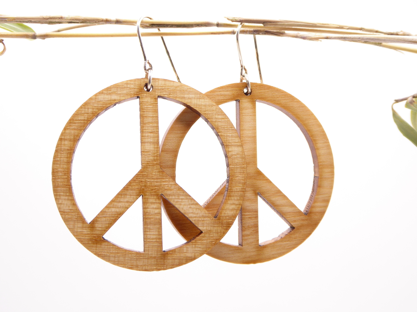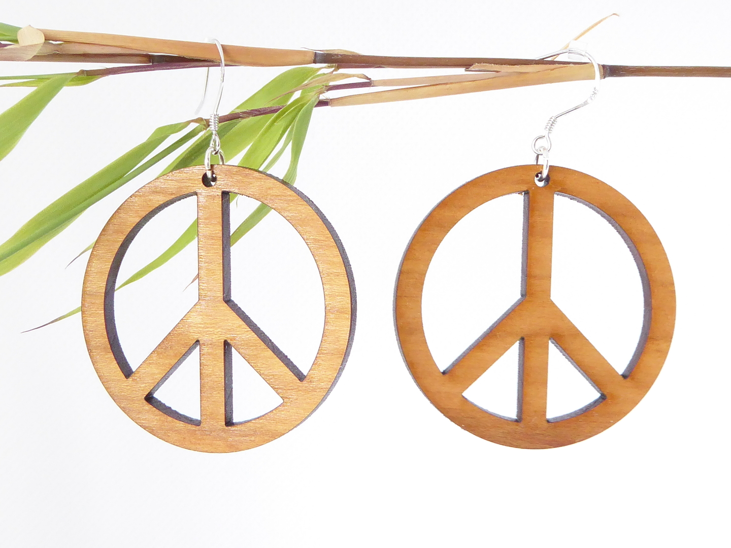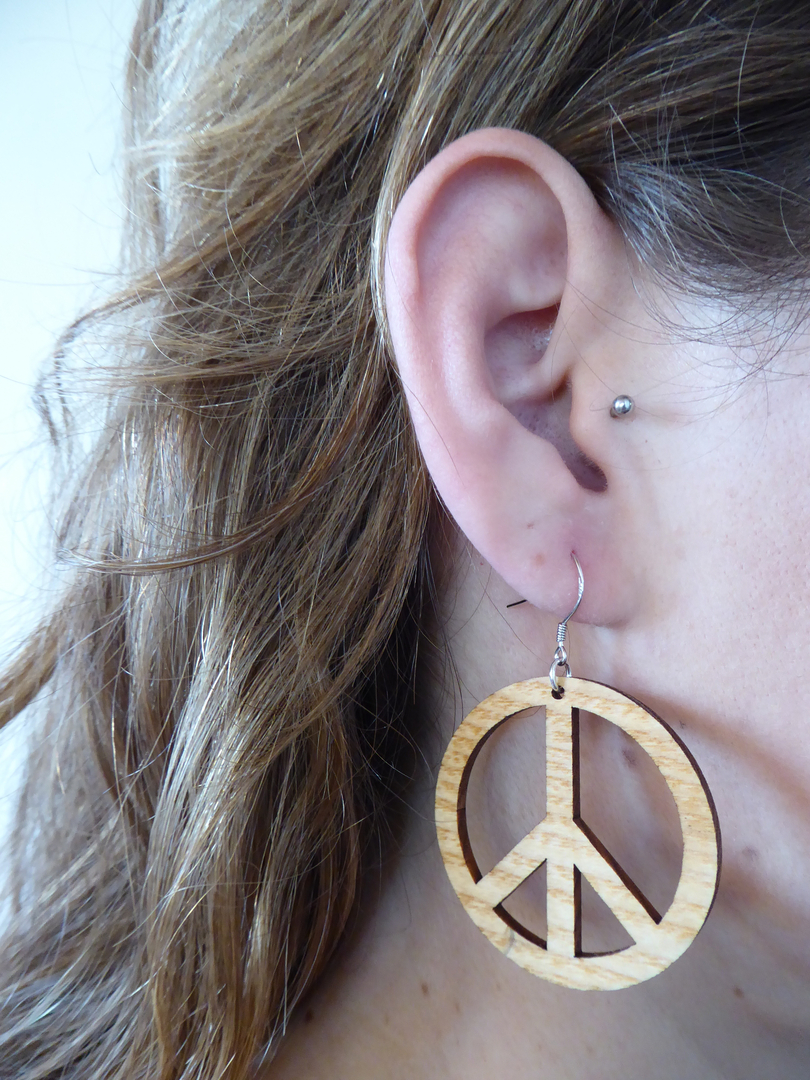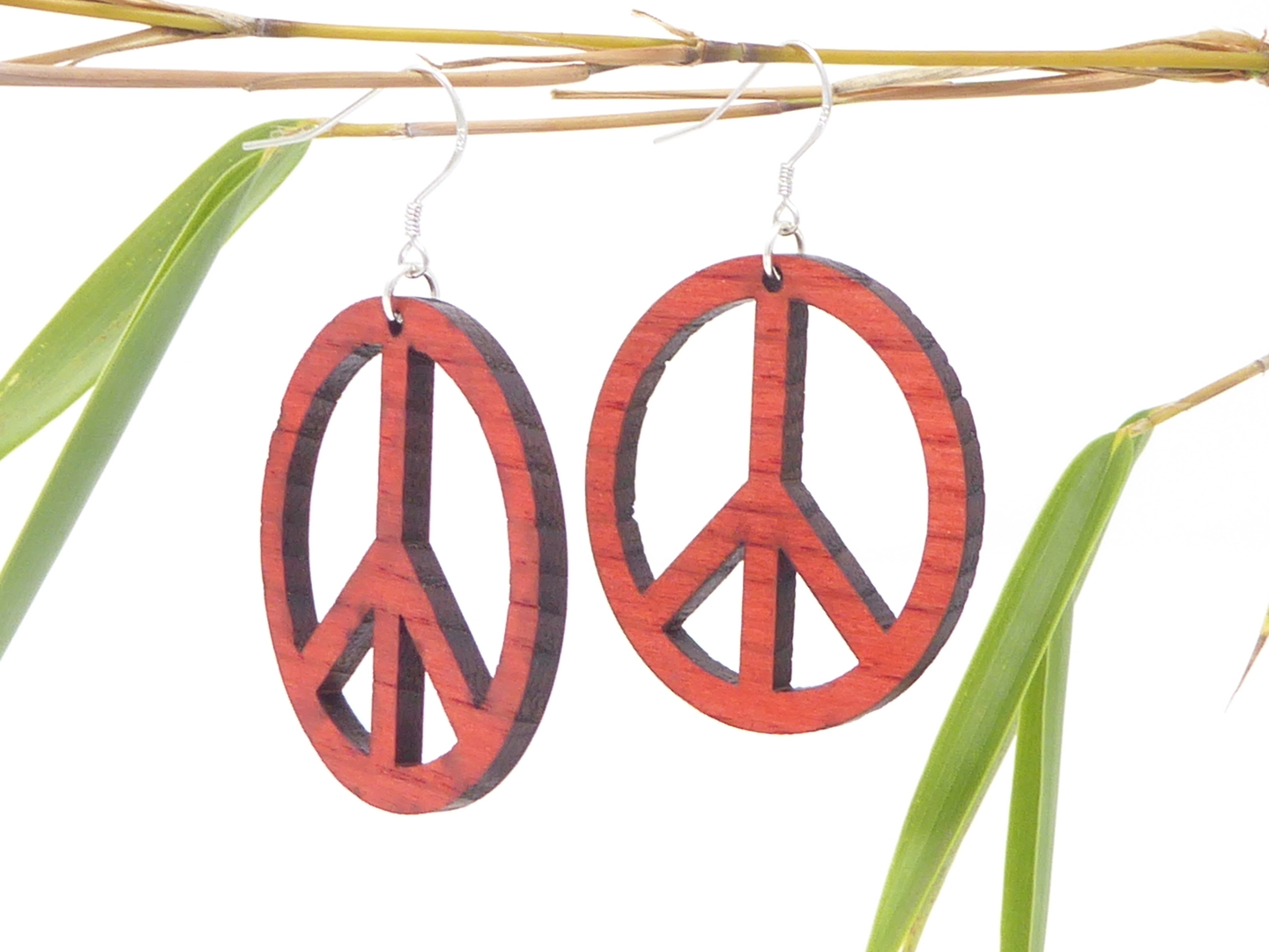 Boucles d’oreilles en bois massif, apprêts en argent 925.