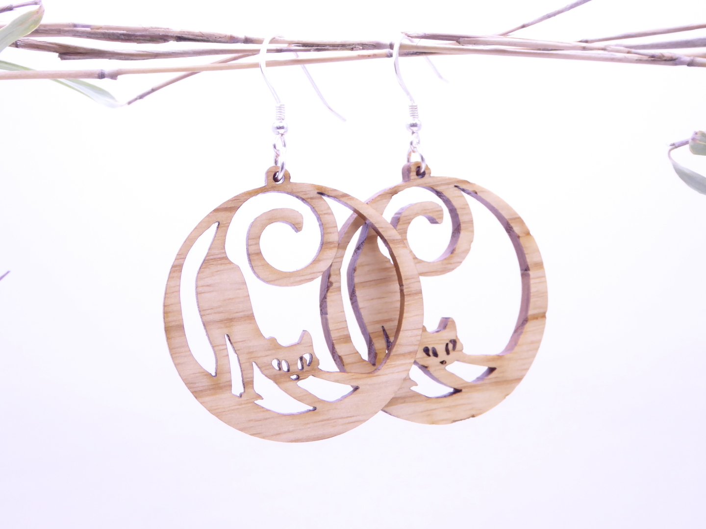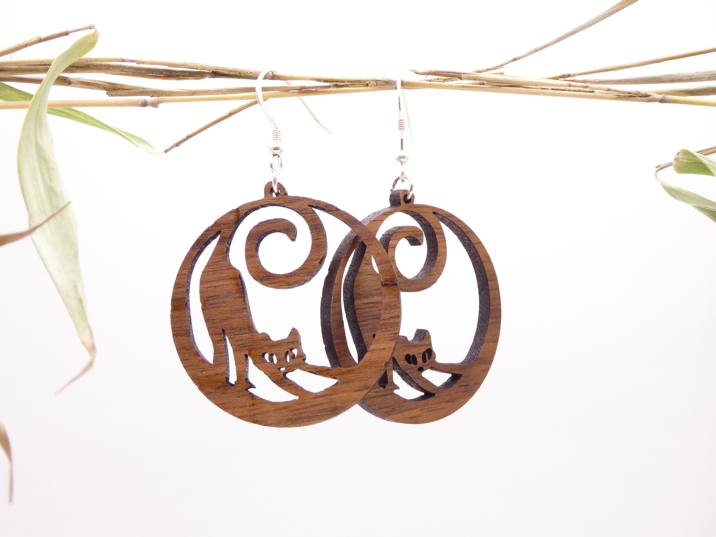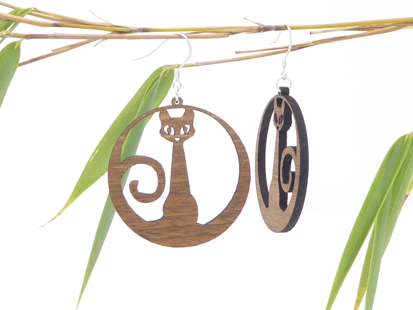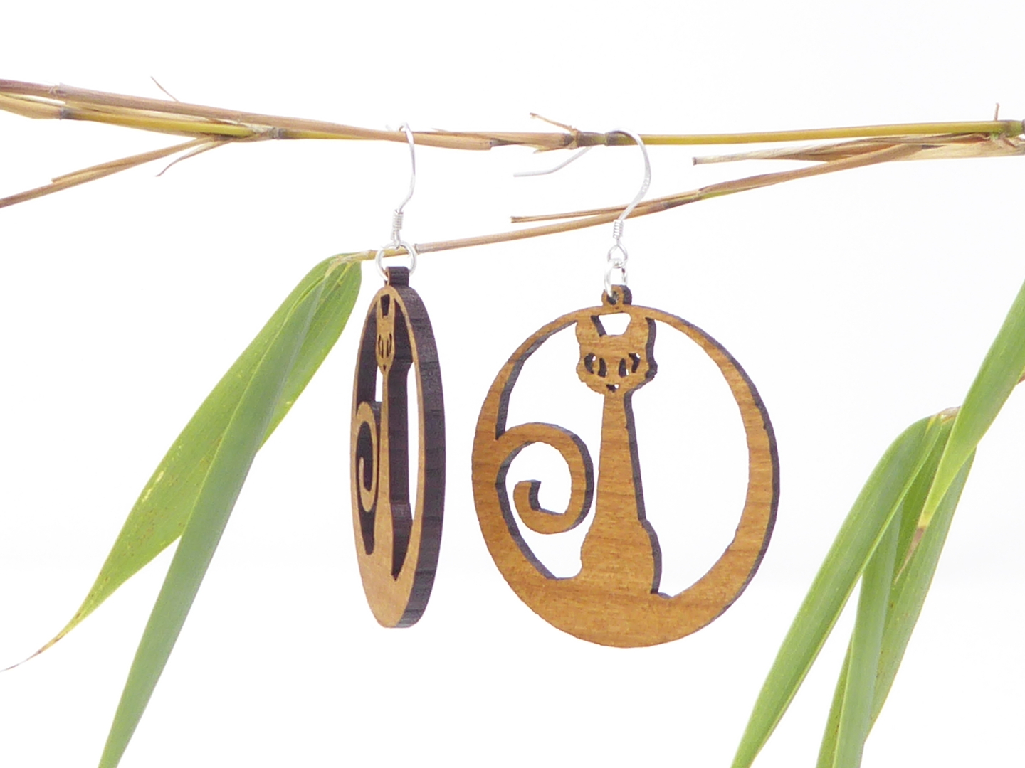 Boucles d’oreilles en bois massif, apprêts en argent 925.
