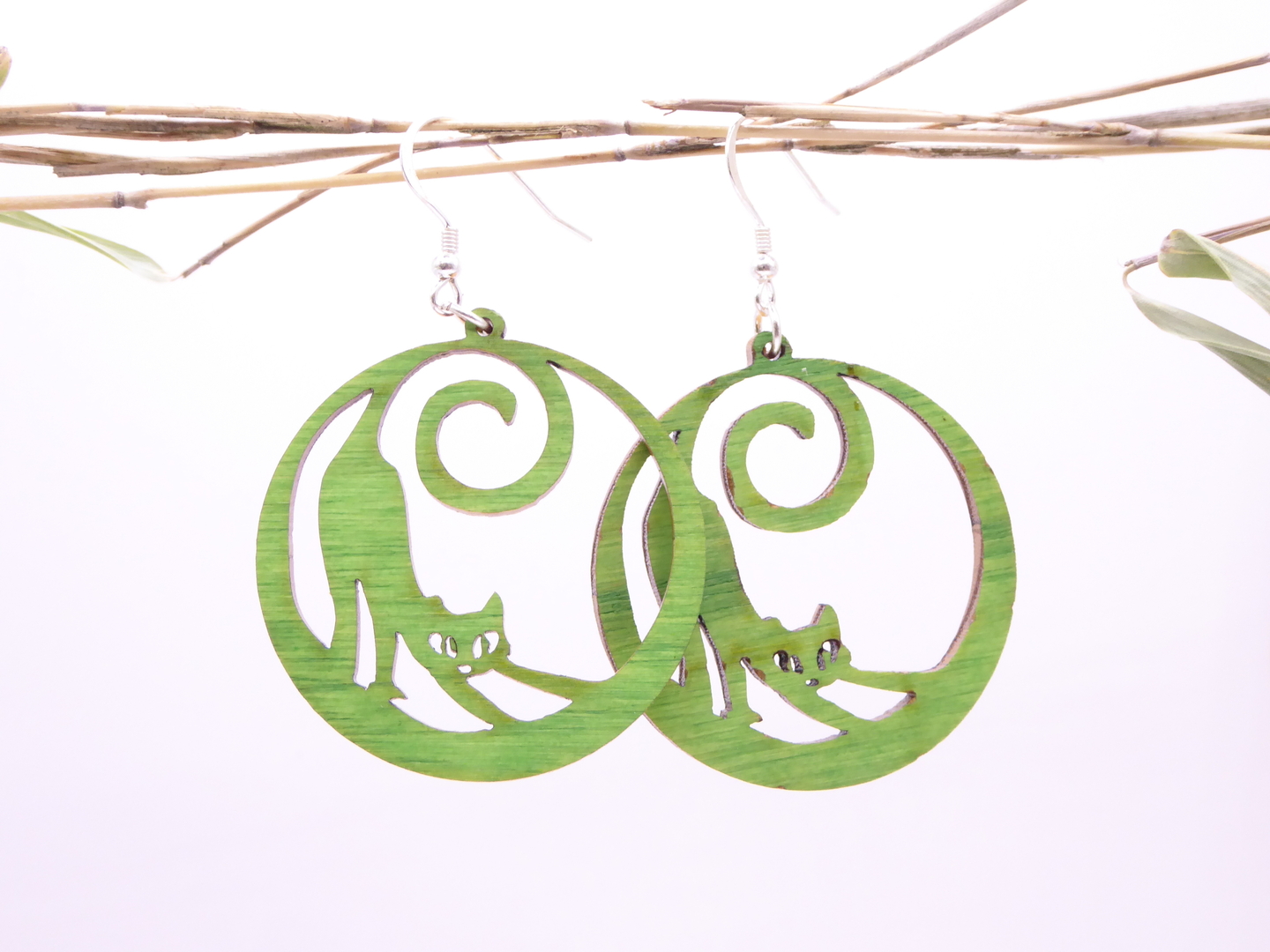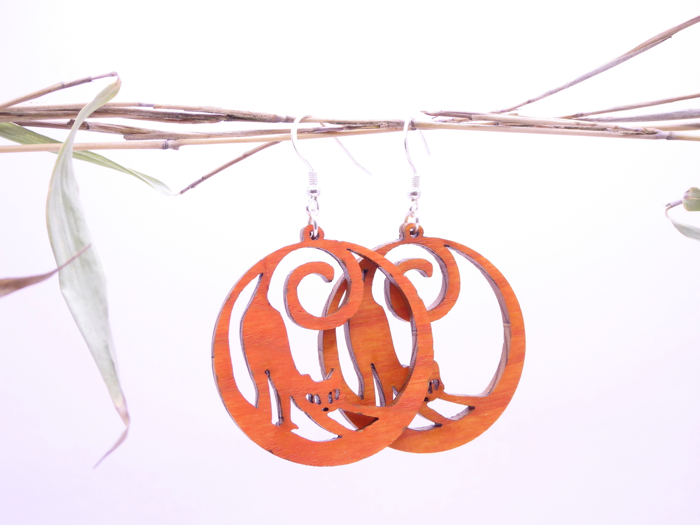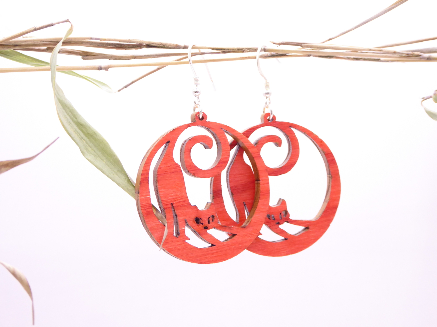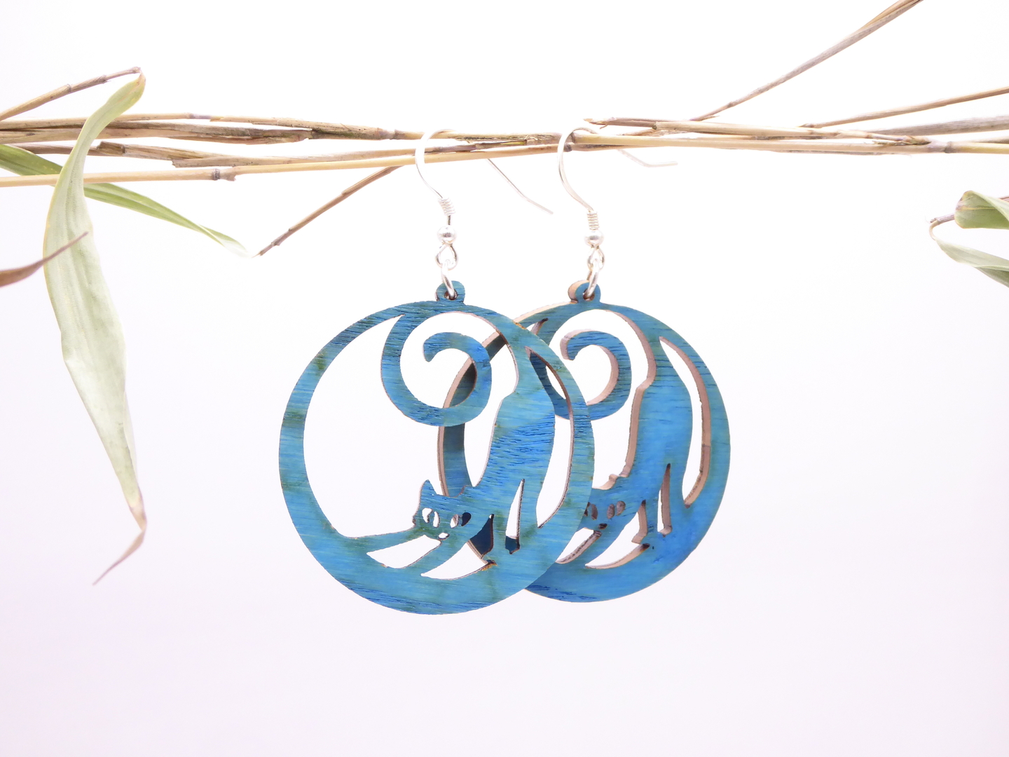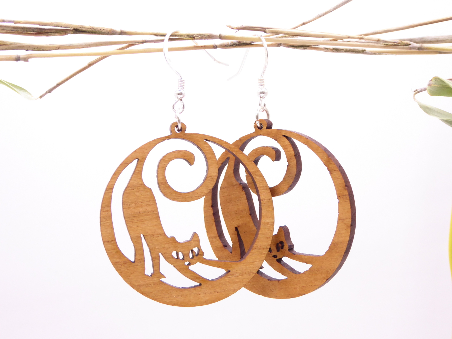 Boucles d’oreilles en bois massif, apprêts en argent 925.