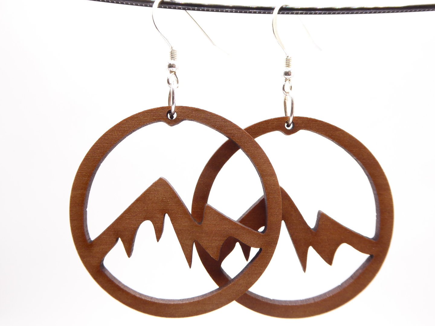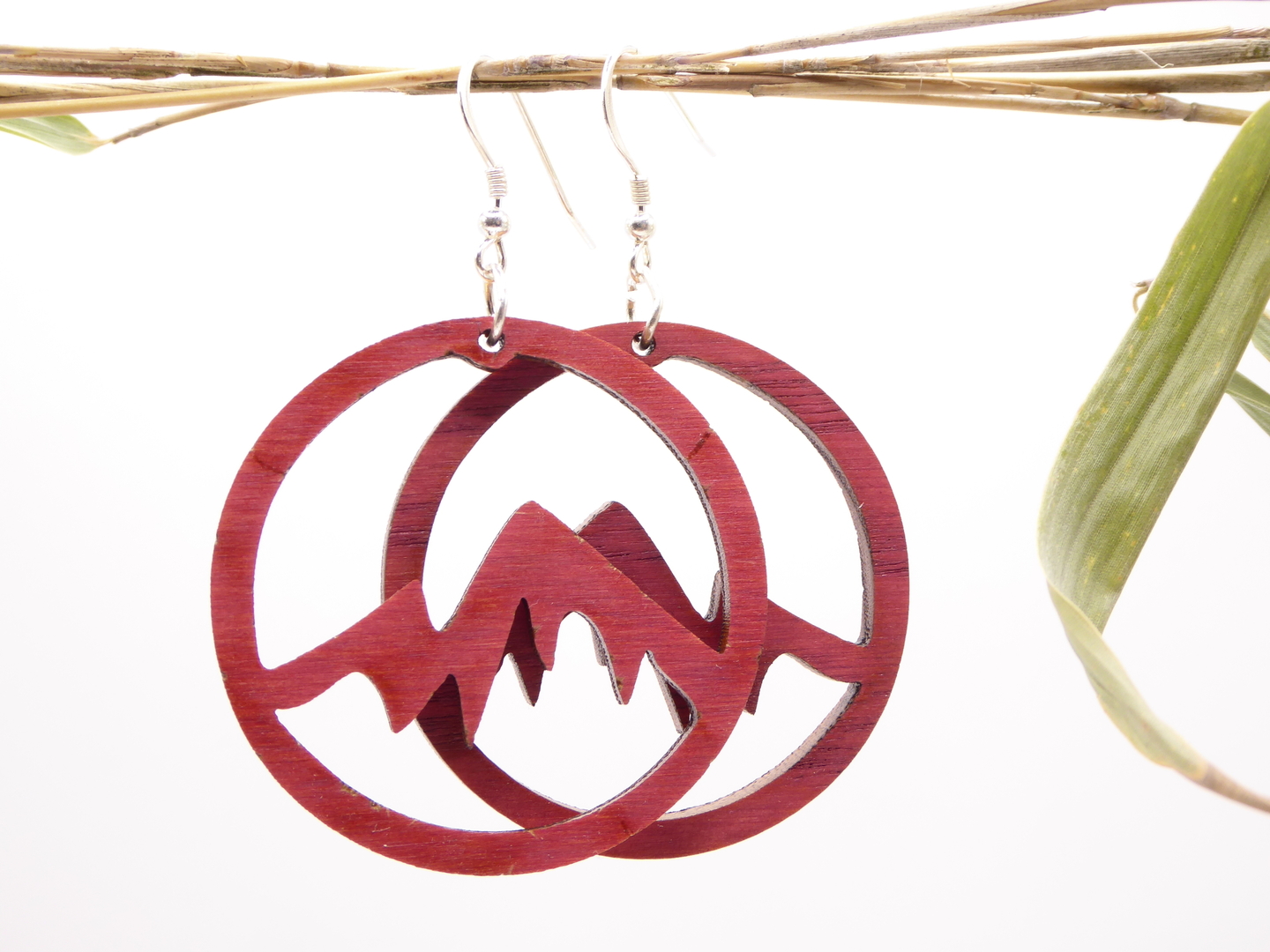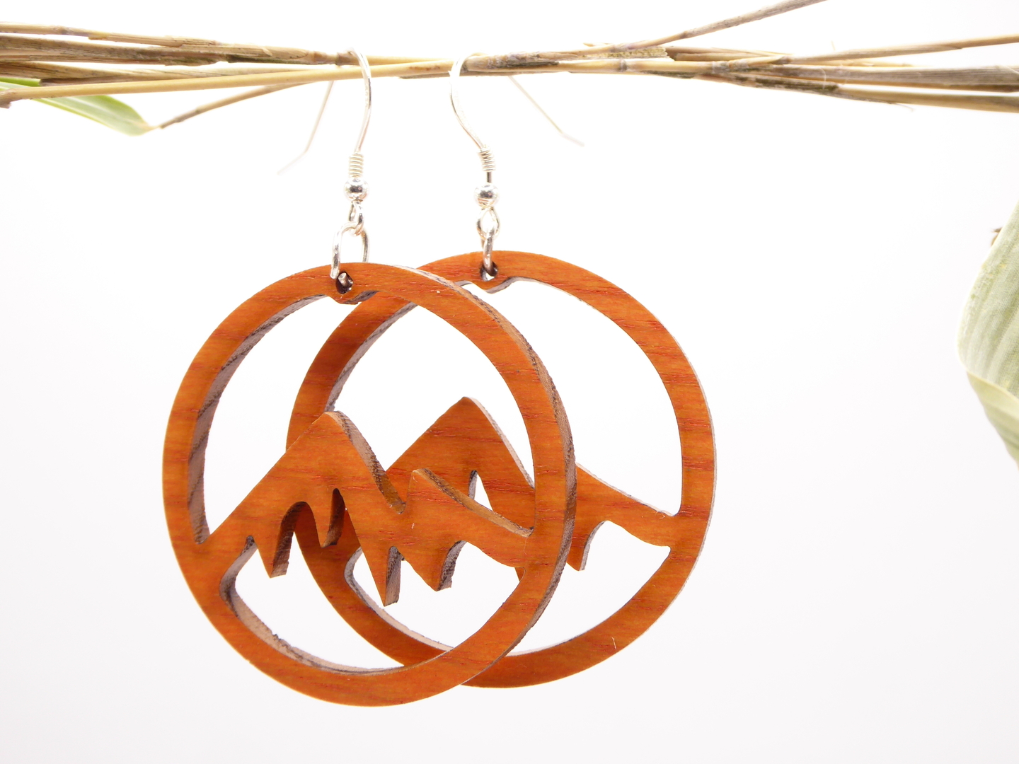 Boucles d’oreilles en bois massif, apprêts en argent 925.