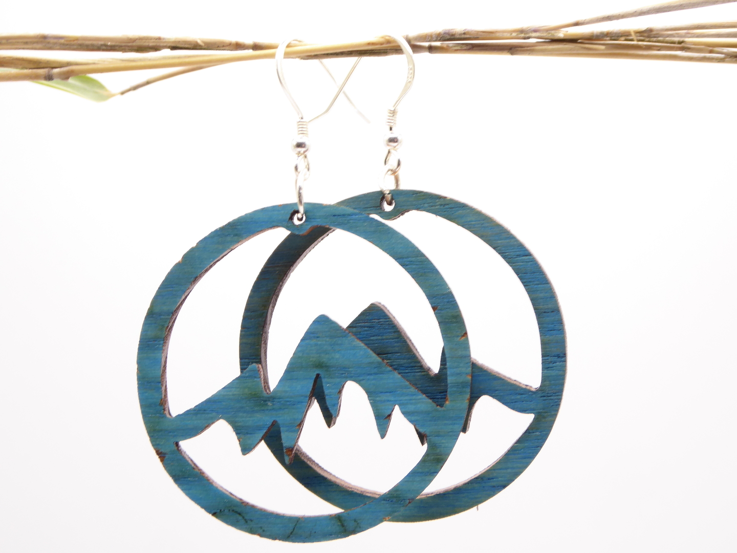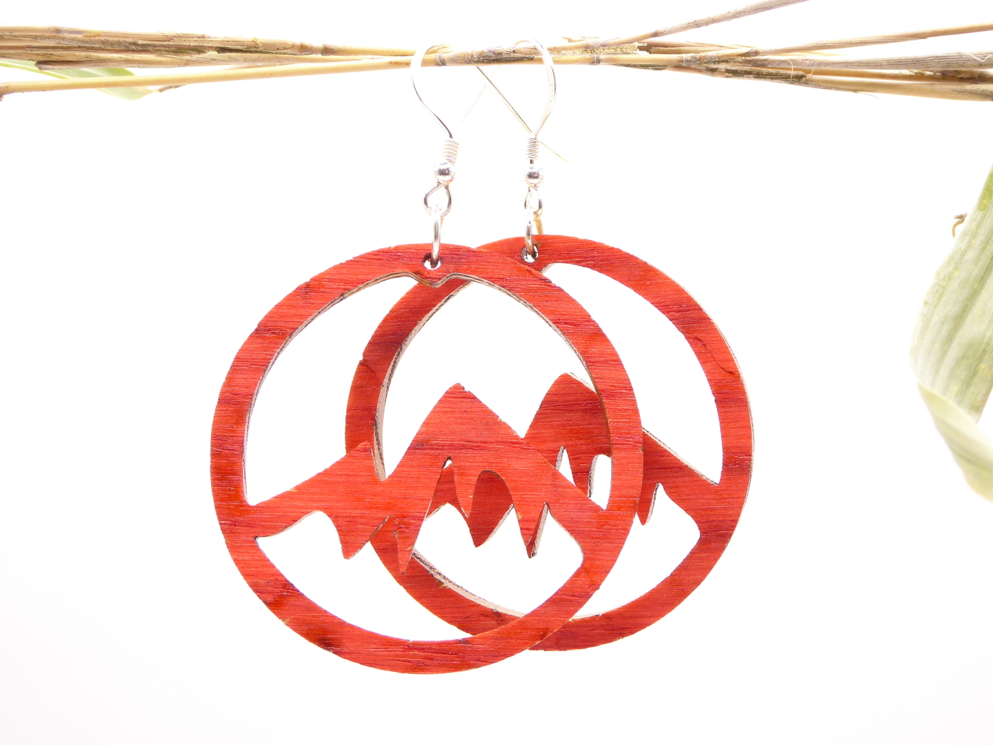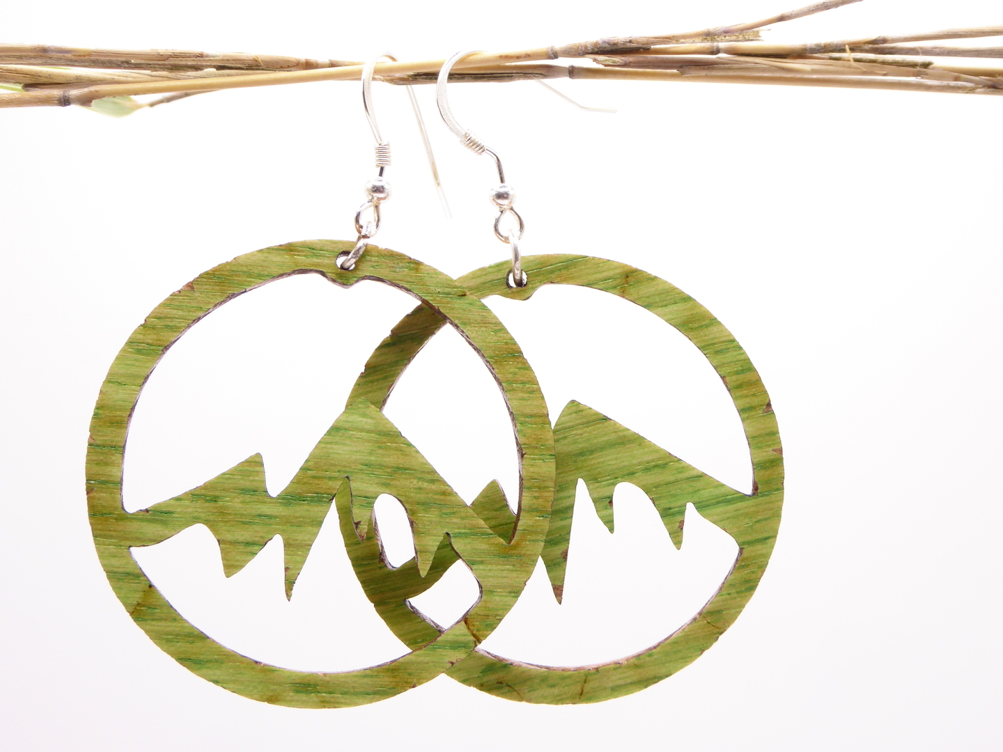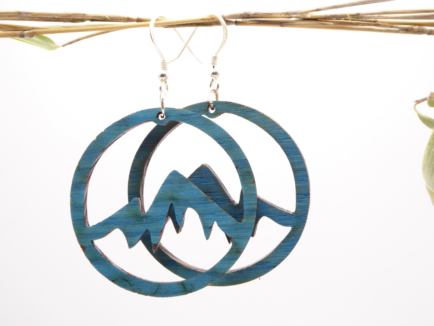 Boucles d’oreilles en bois massif, apprêts en argent 925.