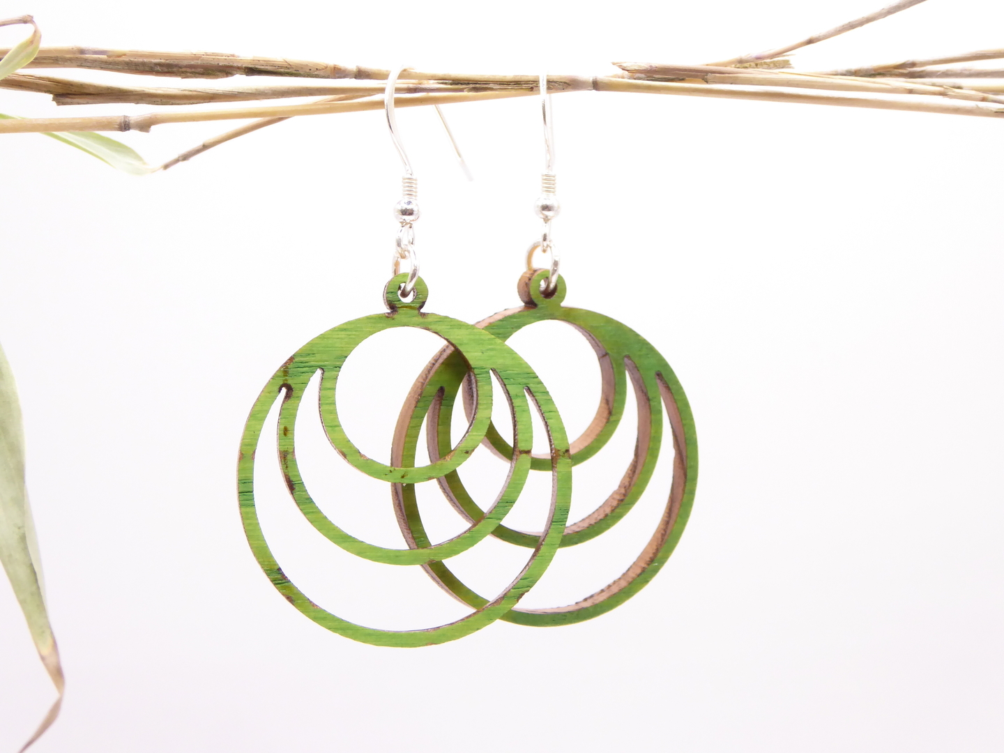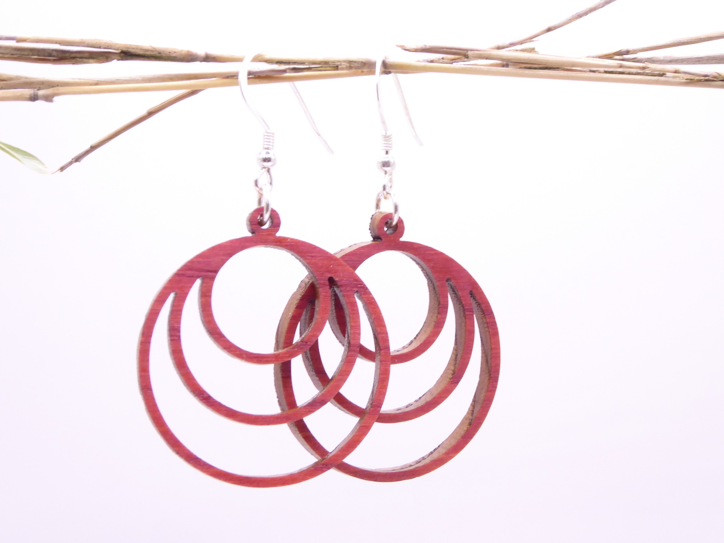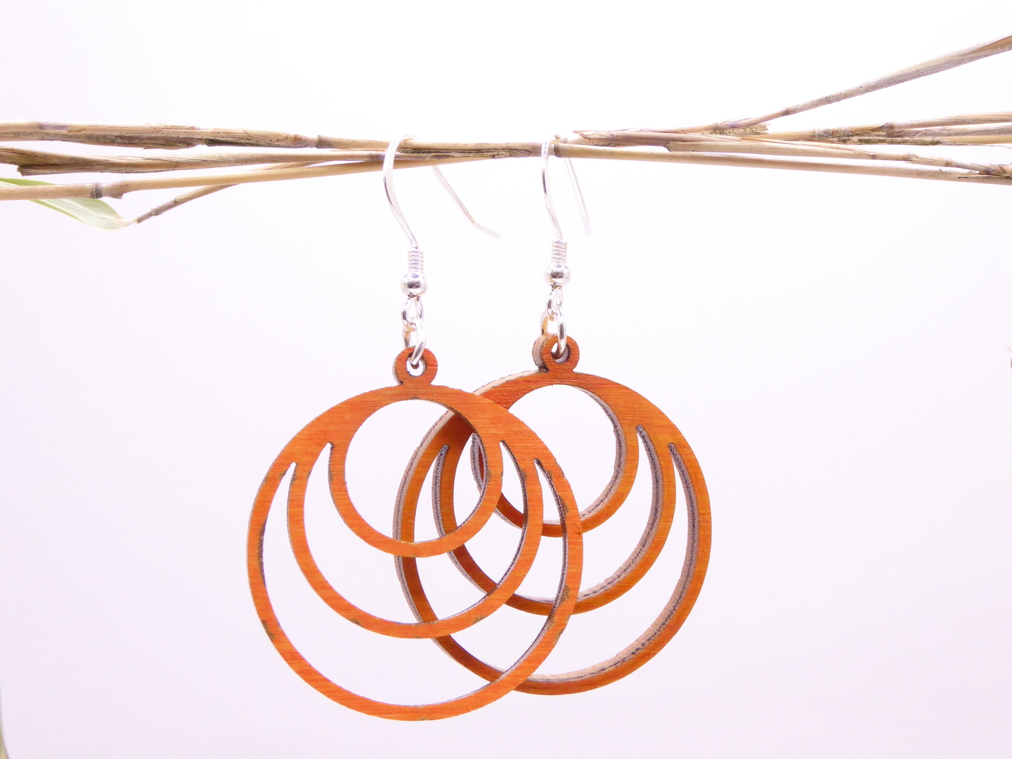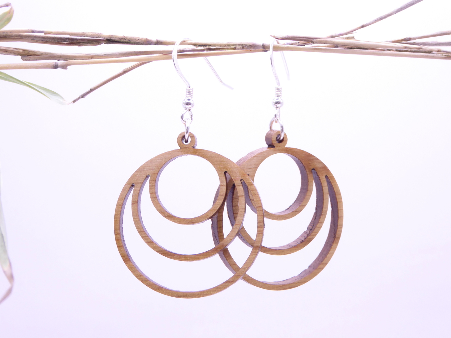 Boucles d’oreilles en bois massif, apprêts en argent 925.