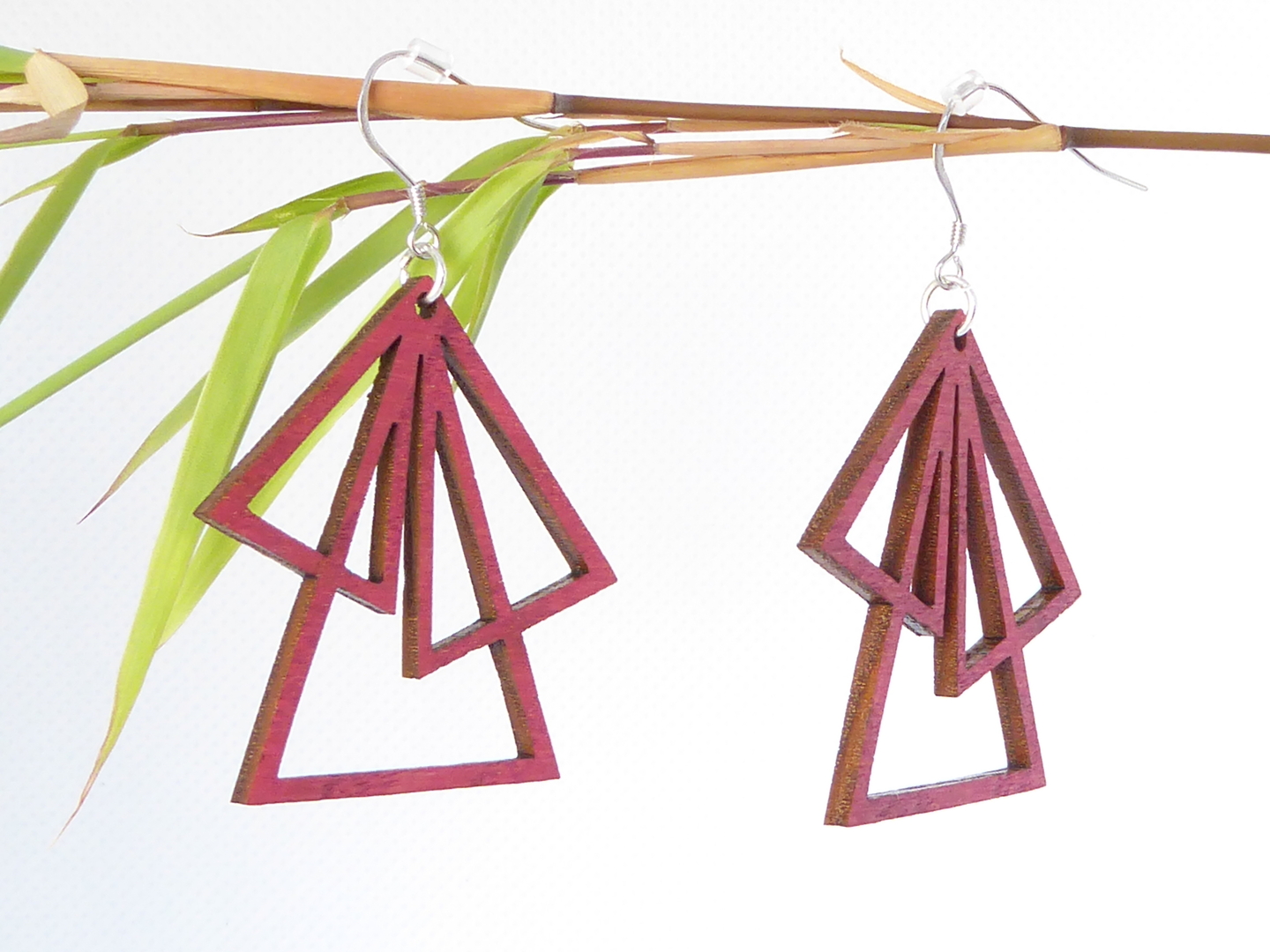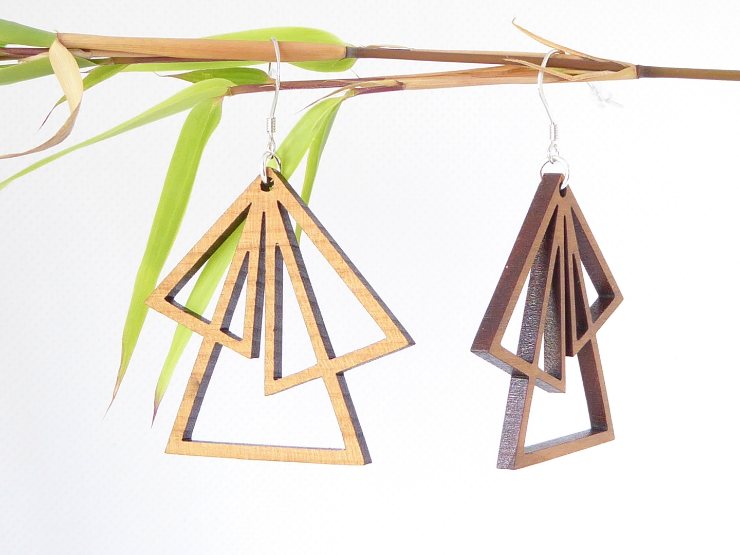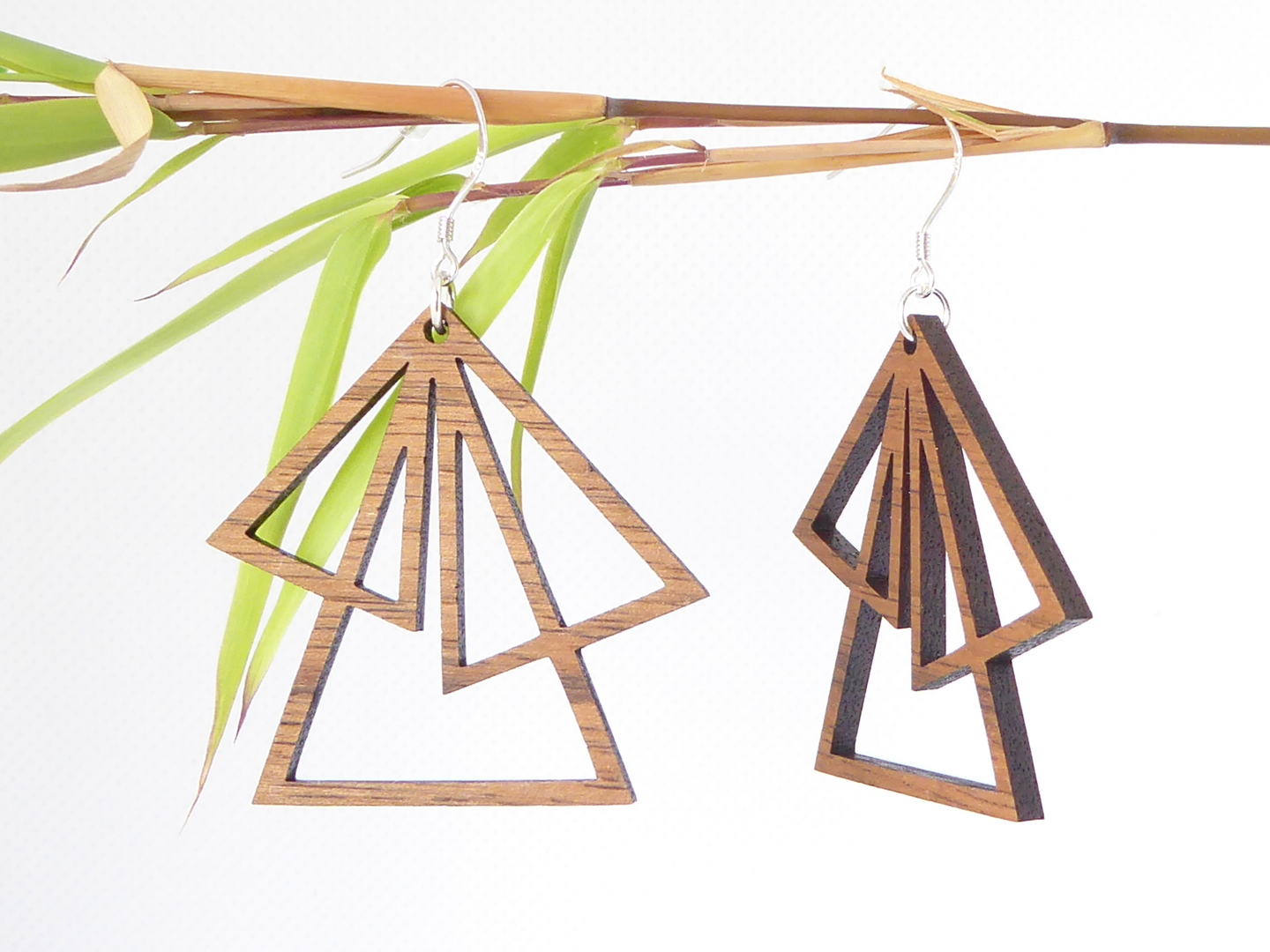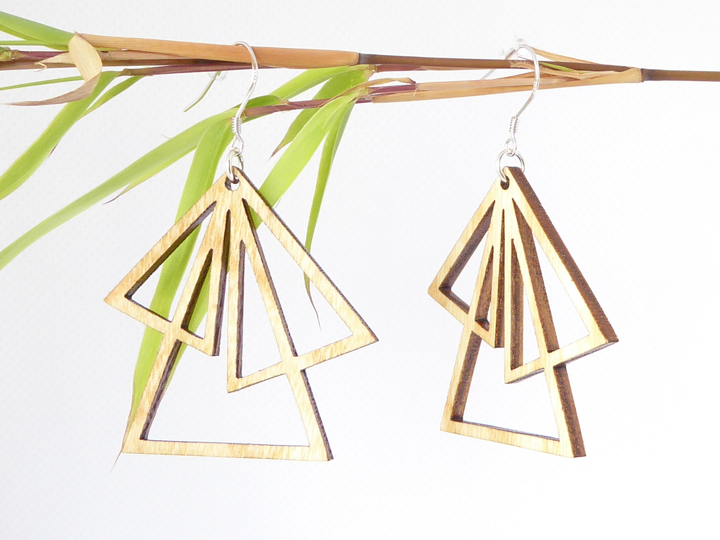 Boucles d’oreilles en bois massif, apprêts en argent 925.