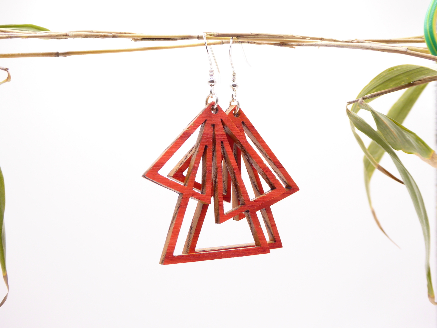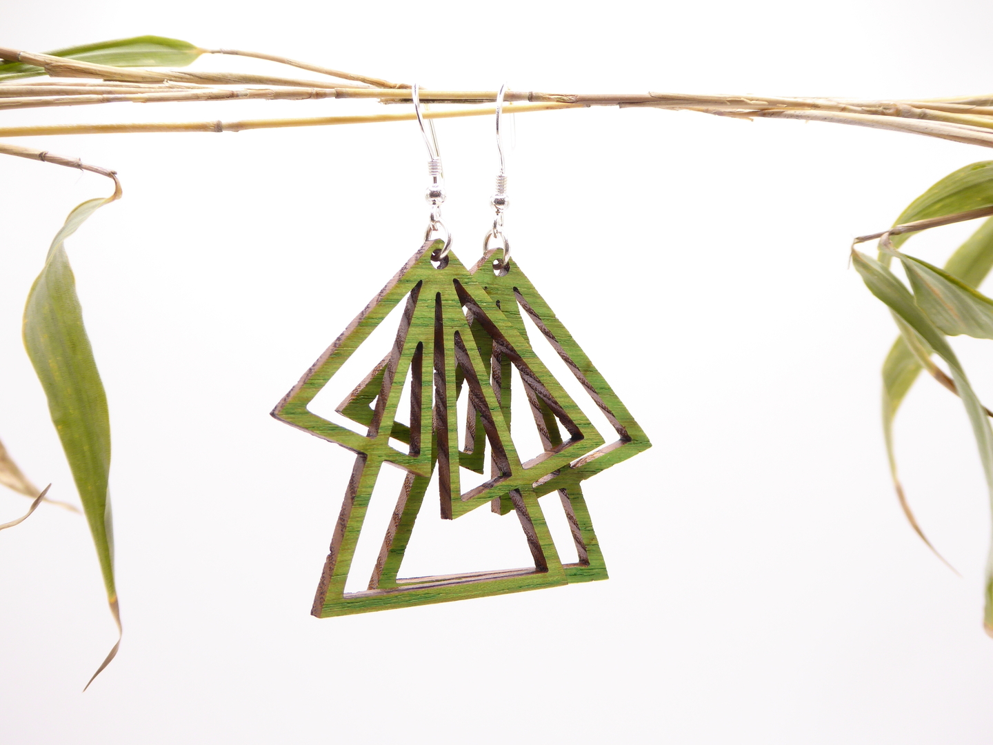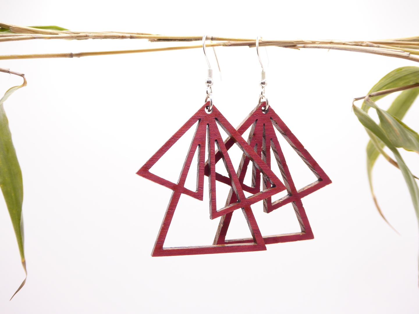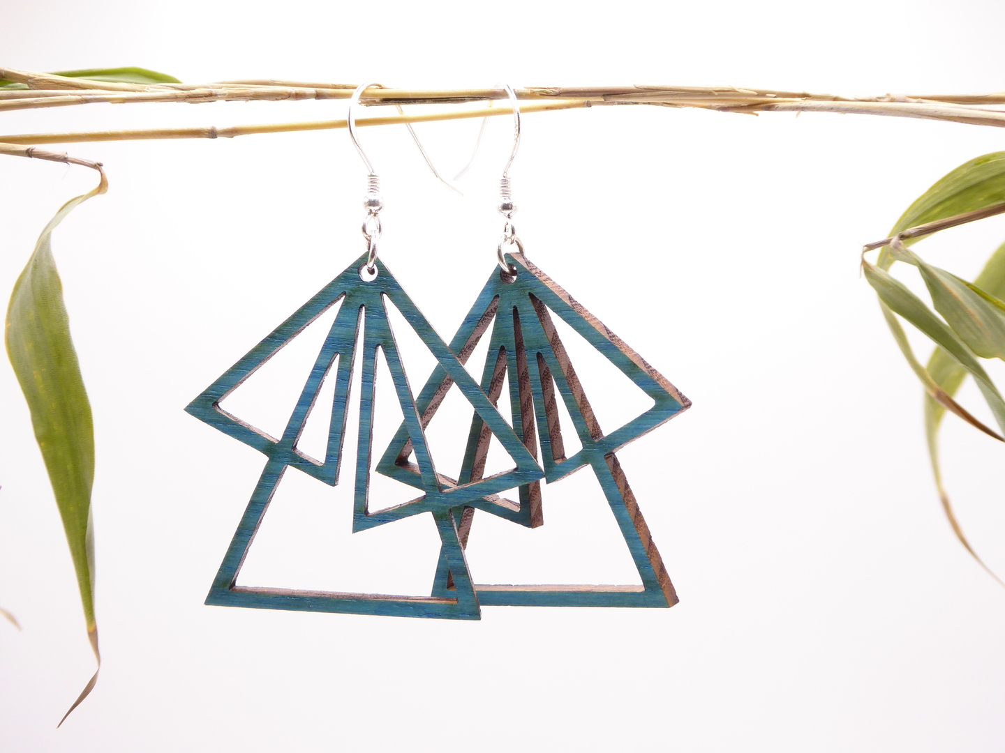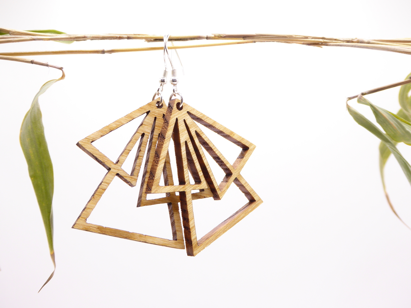 Boucles d’oreilles en bois massif, apprêts en argent 925.